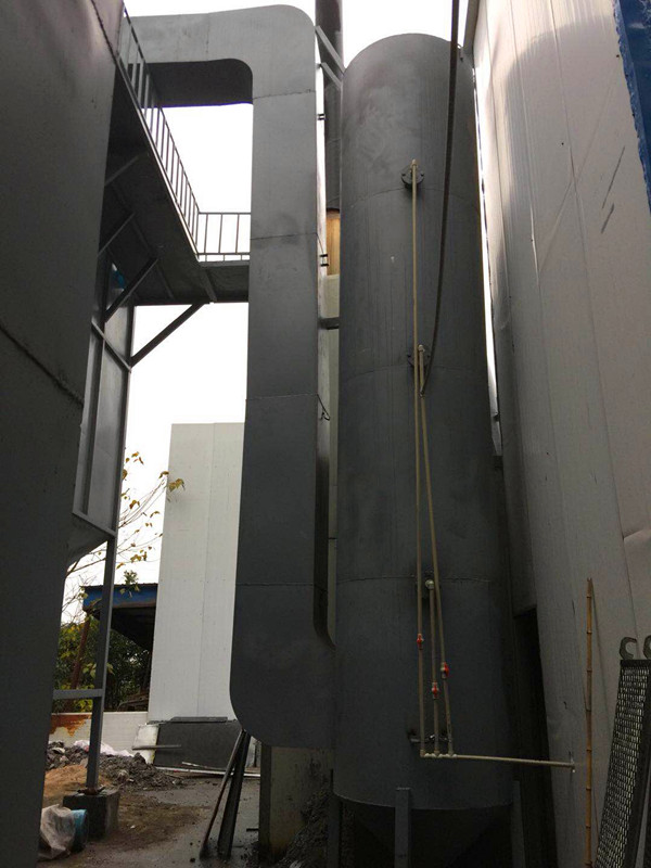 治理措施:根据该项目现场工况配套生物质锅炉的废气净化施工,配套安装前级高温布袋除尘系统+后级脱硫脱硝洗涤净化塔,配套加药箱及收集管道等工程量。